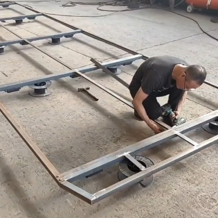 • Second, weld the rollers into the channel steel as the wheels for steel iron pallet