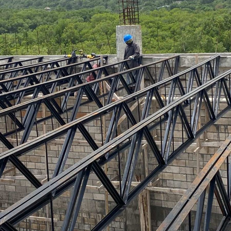 • First steel supply steel frames, which are welded from steel angle bar.And customers use them to support the roof.